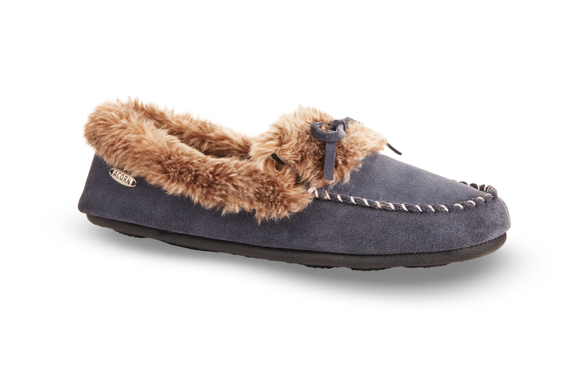 Treat yourself in luxurious ultra-soft faux fur with Acorns Faux Fur Moc. For the most luxuriously soft slipper experience, step into the plush upper with faux fur trim and lining in a classic moccasin silhouette. Full coverage design with enhanced Cloud Contour memory foam technology and built-in arch and heel support ensure total comfort, support, and fit. Pamper your feet with every step: from house and bedroom to spa and travel, Acorn will take you on every aprs adventure.