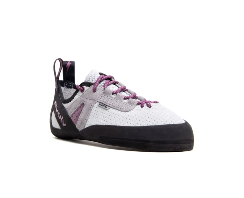 The Elektra Lace is designed for the climber that has a lower volume and narrower foot with comfort and all-around moderate performance in mind. The single layer leather, that features a semi-perforated upper, allows the shoe to melt and mold to your foot giving that custom fit while ensuring that the shoe does not lose structure; the perforations do not penetrate the upper. The length speed lace closure will ensure that you can sinch the shoe up quickly when you need to add a little more performance and drive some extra power to your toes. The 1.2 mm full-length midsole paired with a slightly asymmetric toe profile will give you a sturdy enough platform to edge on vertical faces or provide enough confidence for your off vertical endeavors.