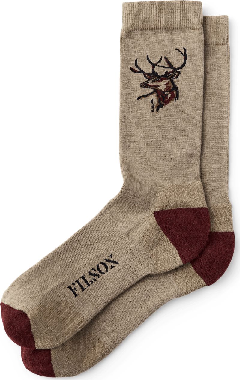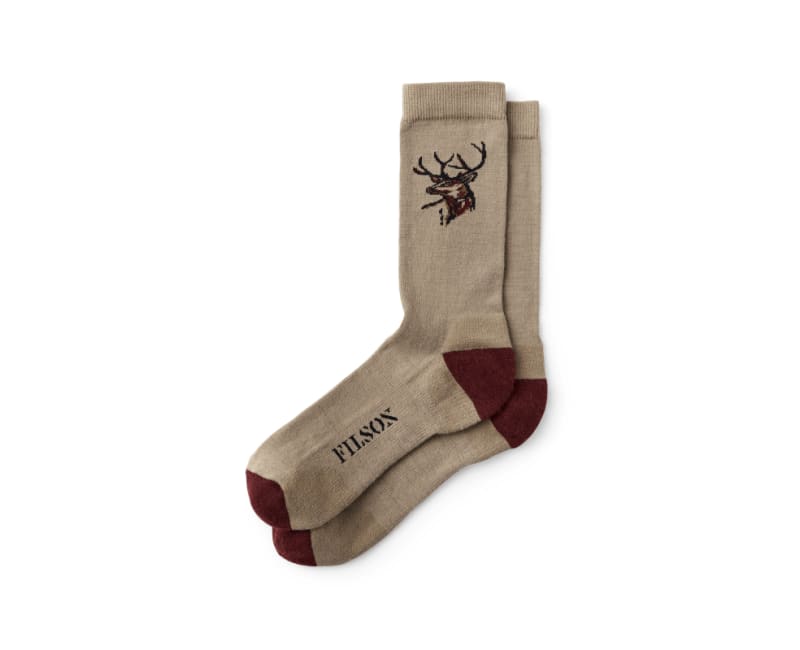 Versatile, midweight socks made with a merino-wool blend. With cushioned soles and higher than 50 percent merino wool content, Filson's Everyday Crew Socks deliver moisture-wicking padded comfort for long days on your feet. Light enough for summer wear with hiking boots and warm enough for all but the coldest temperatures, versatility in built into these socks. Flat toe seams minimize blister-causing rubbing.