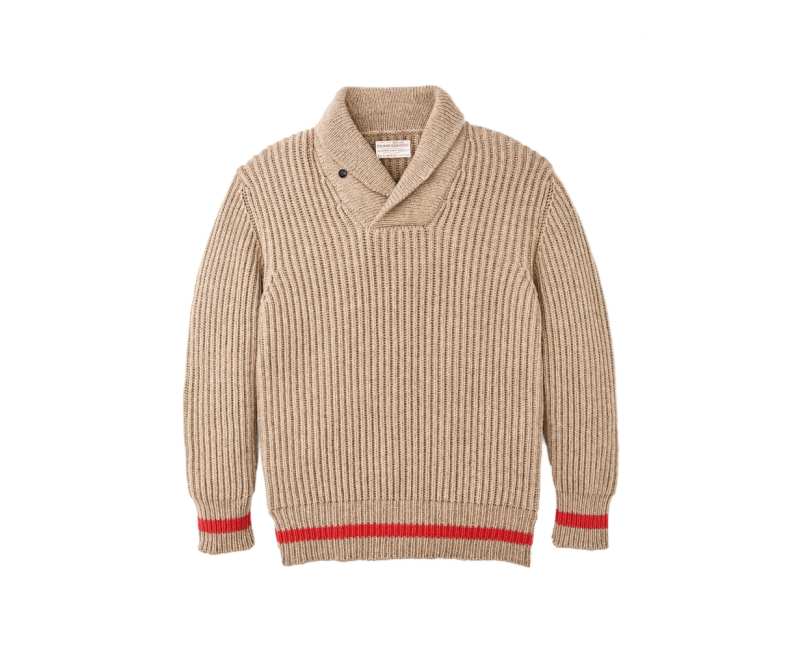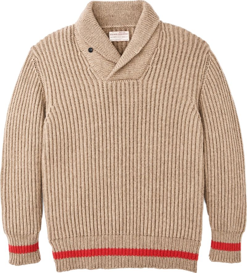 The Bristol Shawl-Neck Sweater is crafted in Italy with 100% wool. This thick, dense pullover features a distinctive vertical fisherman's rib that adds warmth and structure. The shawl collar can be turned up for neck protection against cold wind. Rib-knit cuffs and hem hold their shape and seal in the heat. Wool has protected farmers, hunters, and fishermen from cold, wet weather for centuries. It's ability to insulate even when wet is unmatched by any other fiber. Wool can absorb up to 30% of its weight in water without feeling damp or clammy, so you feel dry even if it gets wet. Filson's is the finest example of nature's original performance fabric.