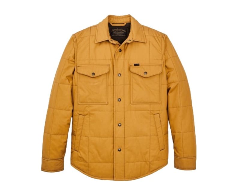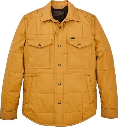 This insulated Jac-shirt is a warm layer that combines the versatility of our original Jac-Shirt with the wind resistance and breathability of tightly woven cotton Cover Cloth. Dry finish Cover Cloth is lightweight cotton canvas that has been a customer favorite for several decades. The 6-oz. 100 percent cotton fabric is tightly woven to block cold wind while remaining quite breathable. Quilted between the inner and outer layers of Cover Cloth is lightweight polyester insulation that continues to insulate if it gets wet. The sleeves are lined with polyester twill that slides easily over layers. Hand pockets are lined with Filson's warm signature Alaska Guide flannel cotton. Chest pockets secure with snapped flaps that are one-hand-operable. Snap-secure front closure and adjustable cuffs. Shirttail hem.