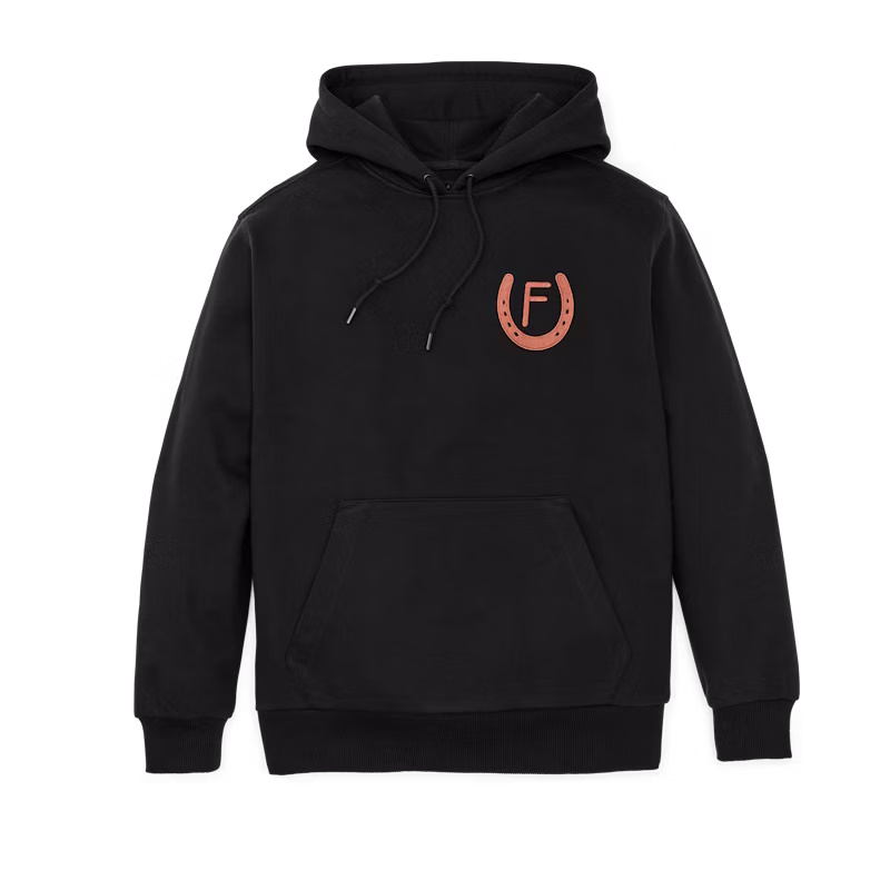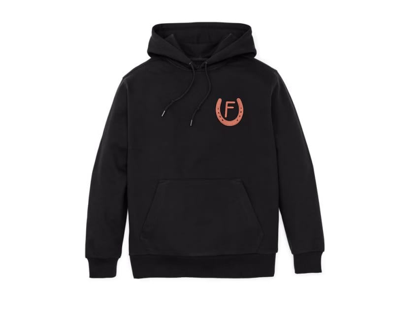 Filson's Prospector Hoodies stand apart from the rest with a difference you can feel the moment you put one on. Theyre made with a tough cotton blend thats tightly knitted for outstanding warmth and durability. The substantial 75% cotton/25% polyester fabric has a lofted interior for warmth and a smooth exterior to resist pilling. The polyester in the blend aids shrinkage control. The hem and cuffs are made from wide, sturdy rib-knit with excellent stretch and recovery for shape retention. The generous-sized hood easily fits over ball caps and is drawcord adjustable for security in the wind. Kangaroo front pocket. Large custom-embroidered wildlife graphics cover the back.