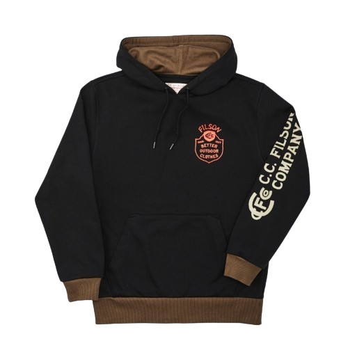 A durable and warm cotton-blend, pullover hooded sweatshirt with custom Filson graphics.