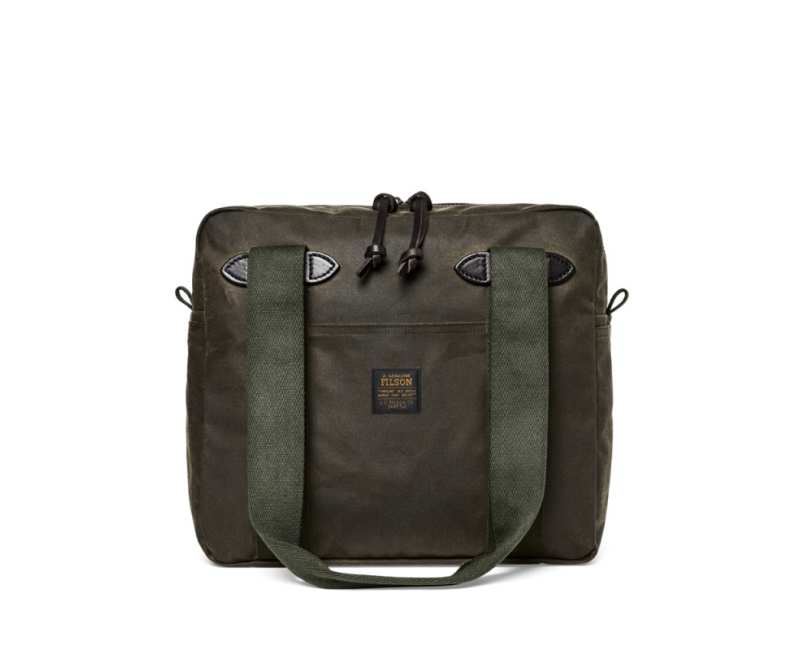 The usefulness of Filson's tote bags is unrivalled, whether at the sporting clays range or on a quick overnight trip. This new variation is made from Filson's iconic Tin Cloth for increased water resistance and lighter weight. A cotton canvas lining protects gear. Bridle Leather handles are long enough for shoulder or hand carry.