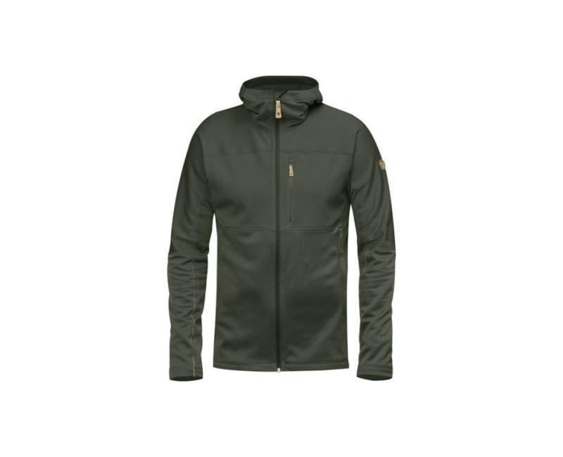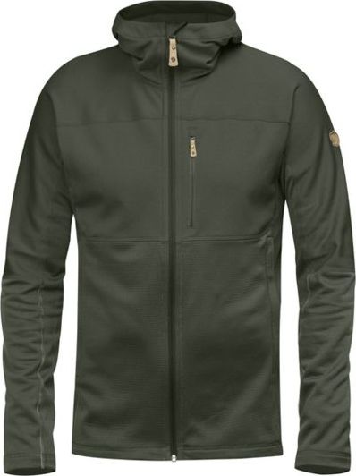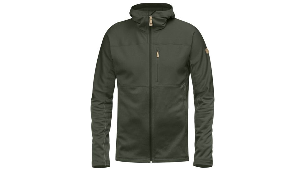 Light, convenient hooded sweater that combines two different fleece fabrics to warm where it is needed most and keep weight and packing volume down. The hood, shoulders and chest are made from flat-knitted polyester fleece (partially recycled) with a soft brushed inside, while the sides, lower torso and lower sleeves are in a lighter grid-structured fleece with superior ventilation. Perfect as a fast-drying and moisture-wicking mid layer on day trips or chilly summer evenings. Comfortable hood and one-way zipper in front opening. One chest pocket and two hand pockets, all with zippers.