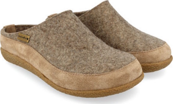 The Skane by Haflinger features a 100% natural wool felt upper and cushioned rubber sole . The felt upper allows for breathability and durability , while the cushioned sole provides ultimate spring to your step. Your feet will feel cozy and comfortable in a natural material that keeps the temperature constant whether for indoor or outdoor wear.