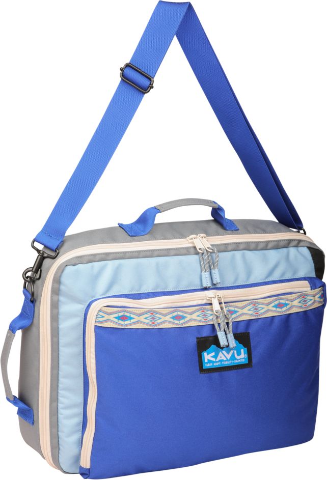 Whether you're traveling by planes, trains, automobiles, bikes, ferry, snow mobile, one wheel, or your feet, the Commuter Converter will be sure to handle your commuting needs. Easy to carry around, this backpack can transform to a messenger bag by tucking straps in back pocket when not in use. Exterior pockets and internal padded lap top sleeve, provide the organizational needs of any one trying to live out their KAVU days at work, school or traveling. Get Busy Livin!