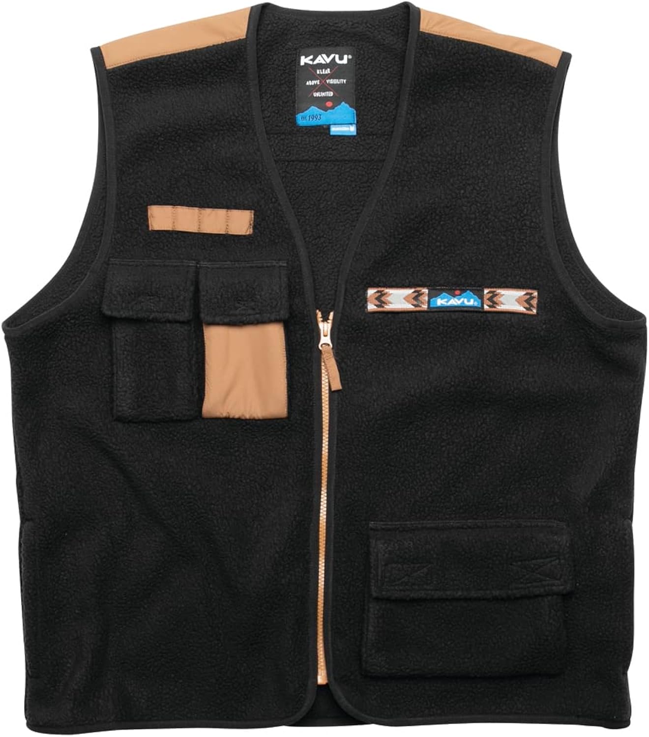 Did someone call for an adventure vest?? This felted sherpa fleece party vest boasts eight pockets - and if youre on a KAVU adventure, youll use them all. Organization is great but this much fire needs to breathe - hence a fully mesh-lined back serves as a ventilation window to keep you cool. Design constructed this vest for fishing, camping, hiking, or pulling an all nighter. Like all things KAVU - engineered for good times.