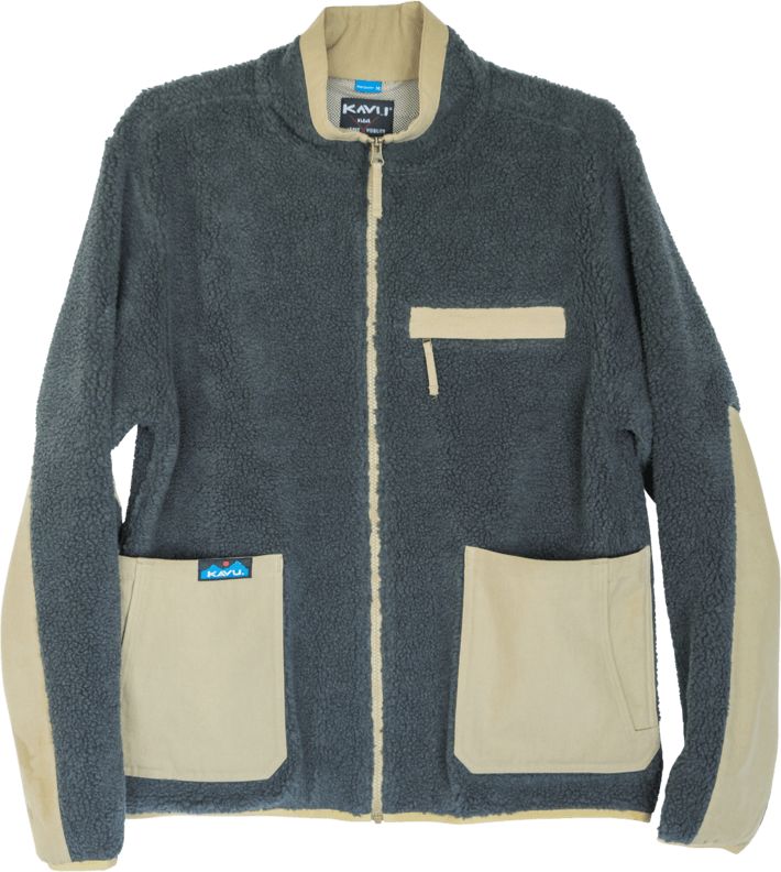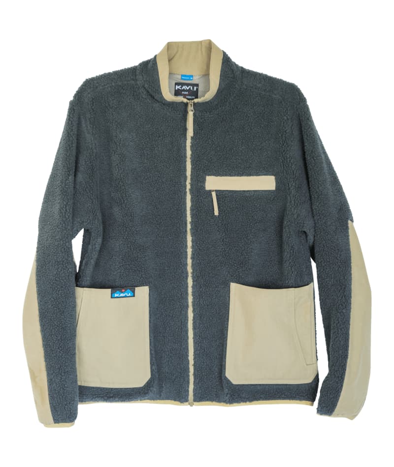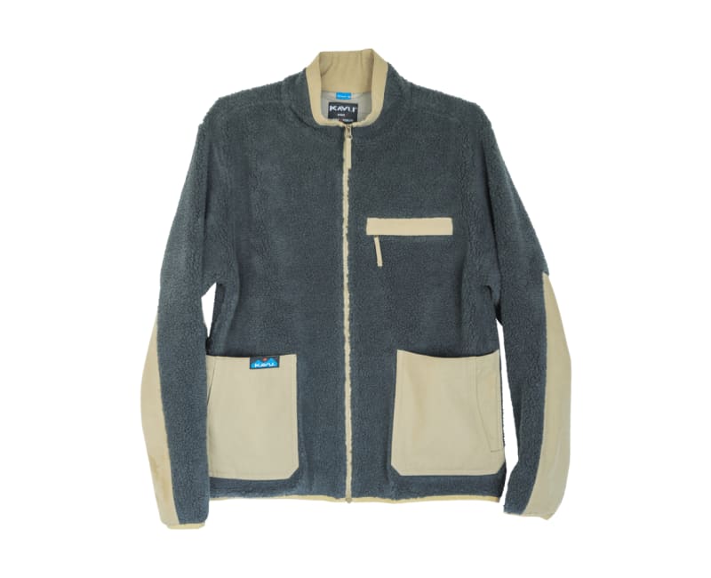 Casual fit, full zip mock neck sherpa fleece jacket, canvas pieced chest welt zip pocket, hand patch pockets with side entry, elbow patches, and inside neck facing, canvas binding at sleeve, top collar and bottom hem.