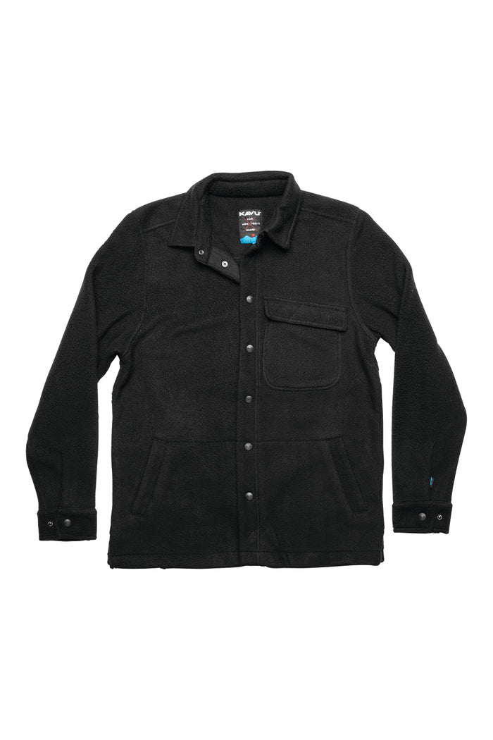- Casual fit, long sleeve fleece shirt jacket with logo snap closure.
