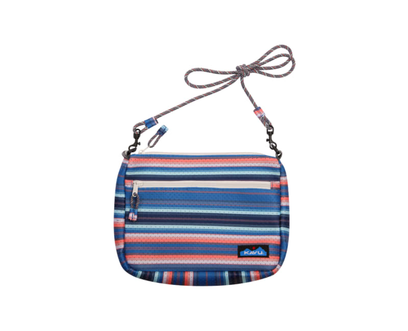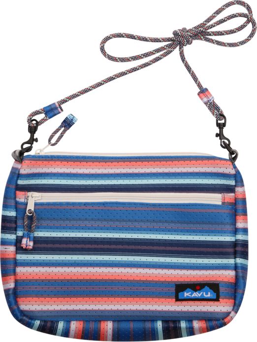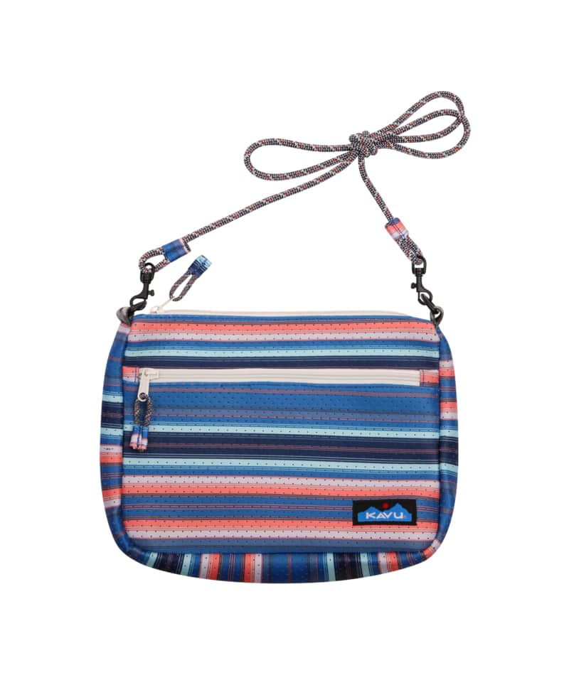 The ocean doesn't have to be the only place you're rockin' neoprene. The NEW Pearrygin Pouch is a crossbody bag made with a neoprene-mesh blend that lets you stand out from the crowd. Complete with the classic KAVU rope strap, this bag is durable, won't get dirty easily, and has a full zip closure to keep your essentials safe and secure. Cross body bag with fixed rope shoulder strap that can detach, metal d-ring and spring hook hardware, main compartment with zip closure and front zip pocket, internal zip pocket, rope loop zip pulls