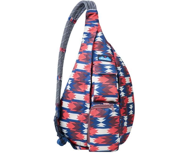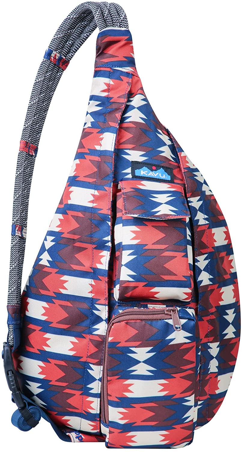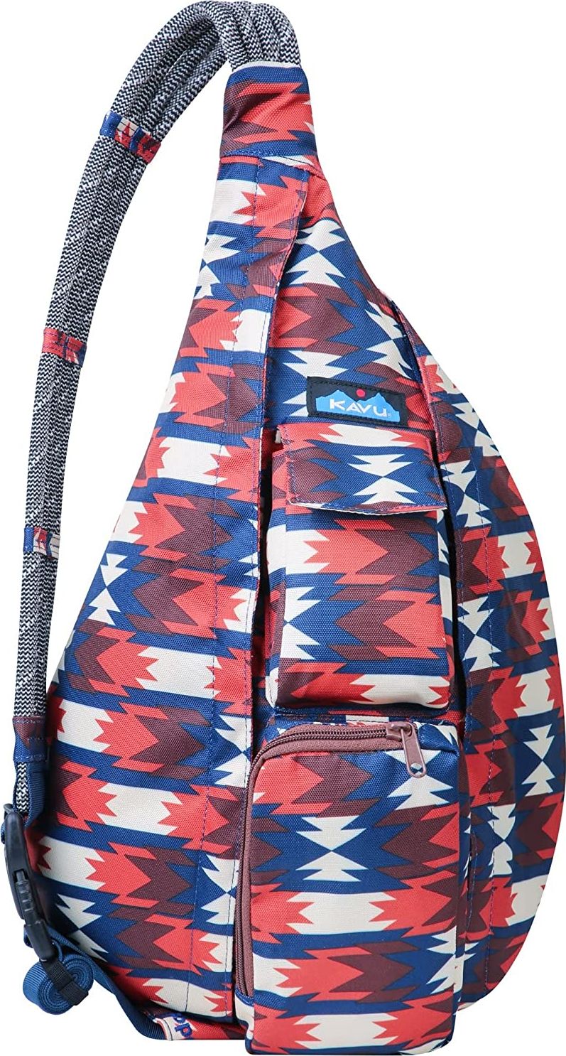 The Rope Sling fits the body like a bag should. It's similar in size and design to its fraternal twin the KAVU Rope Bag with one exception: the Rope Sling is made of polyester, making it water resistant.It also has an ultra-comfortable adjustable rope shoulder strap, two vertical zip compartments, two key or cell phone pockets, and a padded back with KAVU embroidery.