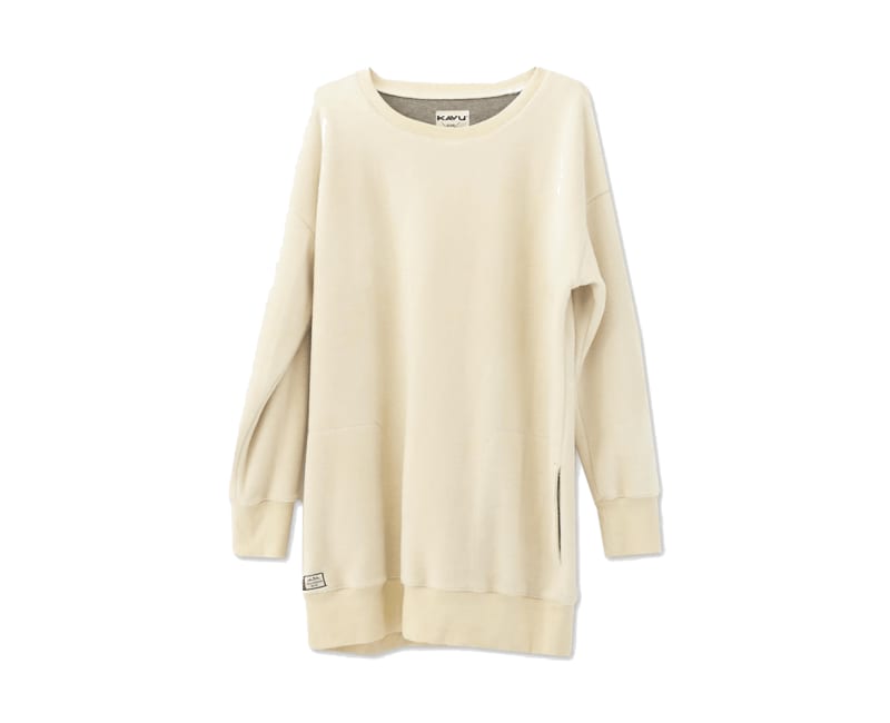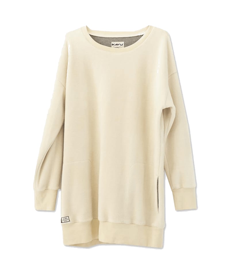 Casual fit, mid-thigh length sweatshirt, on seam pockets, ribbed cuffs and bottom hem.