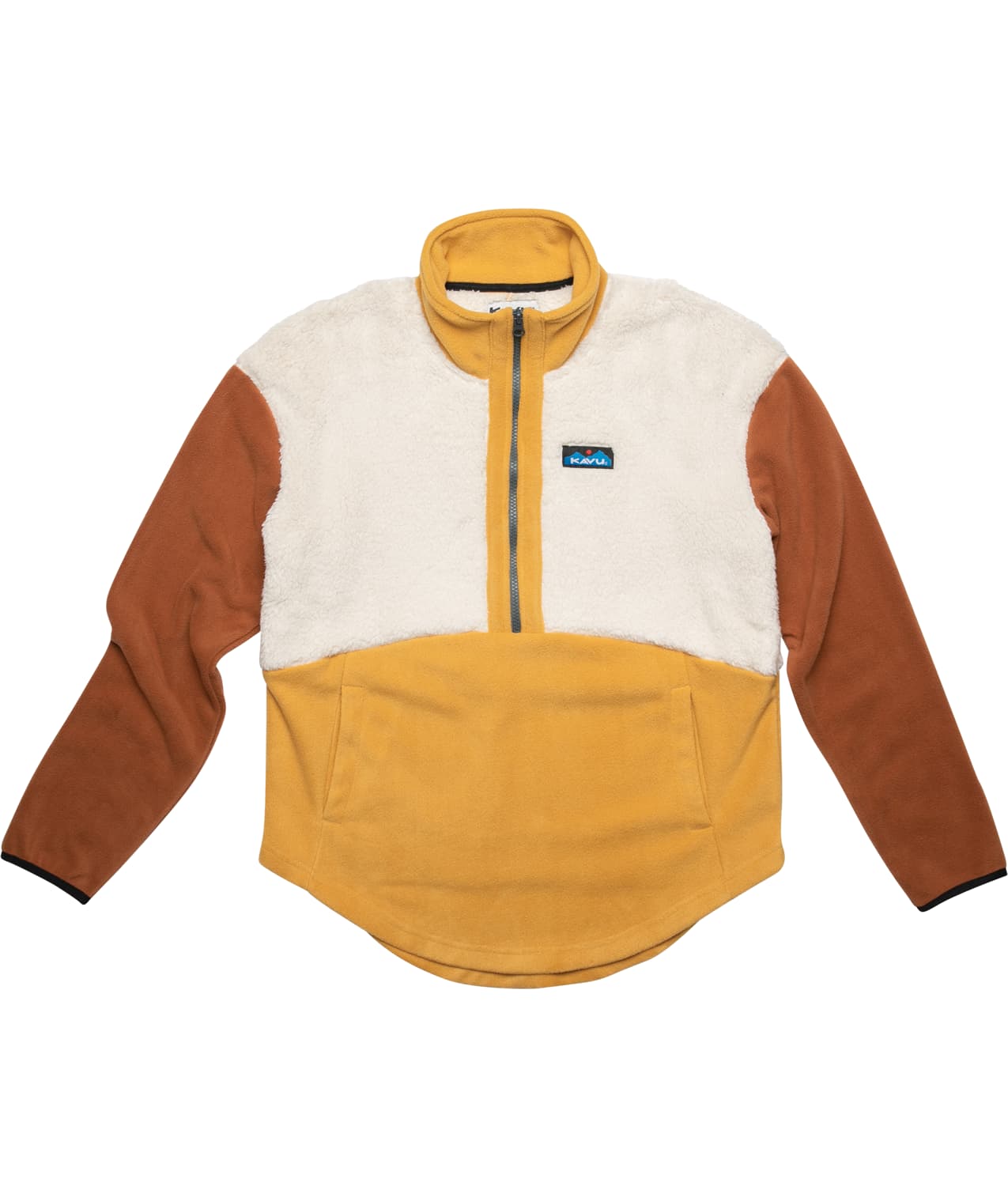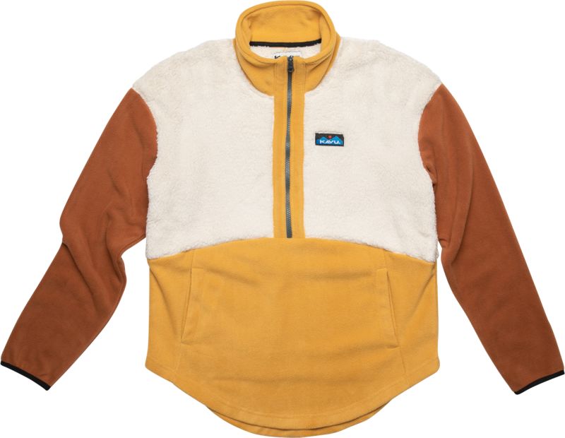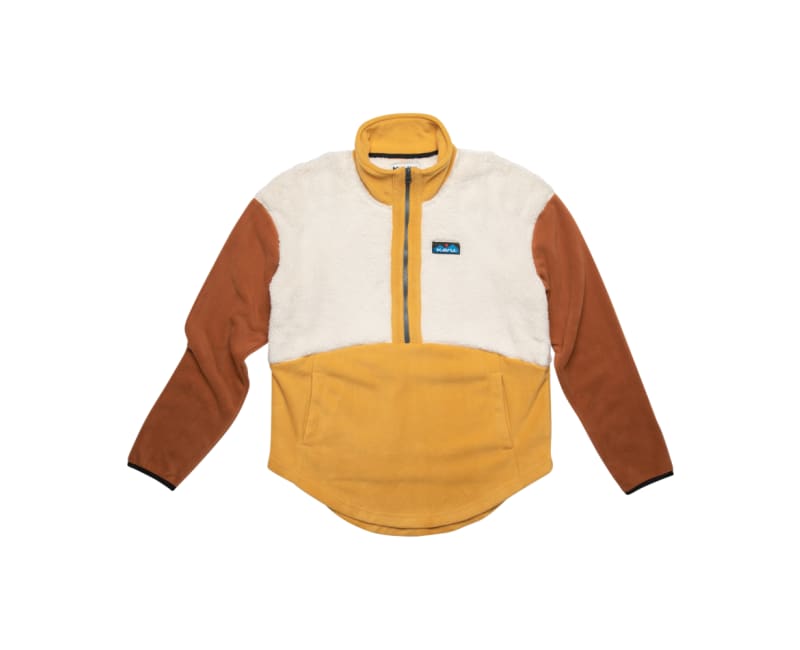 A unique mix of 100 percent recycled polyester butta soft sherpa fleece and polar fleece, the Timber Lane is great for staying cozy during leisure time at the backcountry ski hut or a night out on the town. Relaxed fit, half zip mock neck fleece pullover, length hits at waist, drop shoulder silhouette, hand pockets, elastic binding at sleeve cuffs, curved hem.