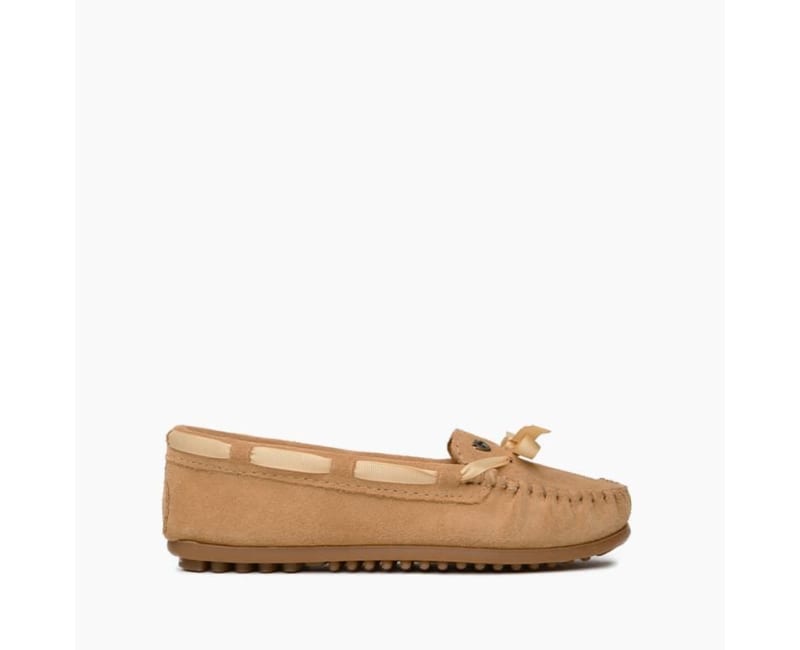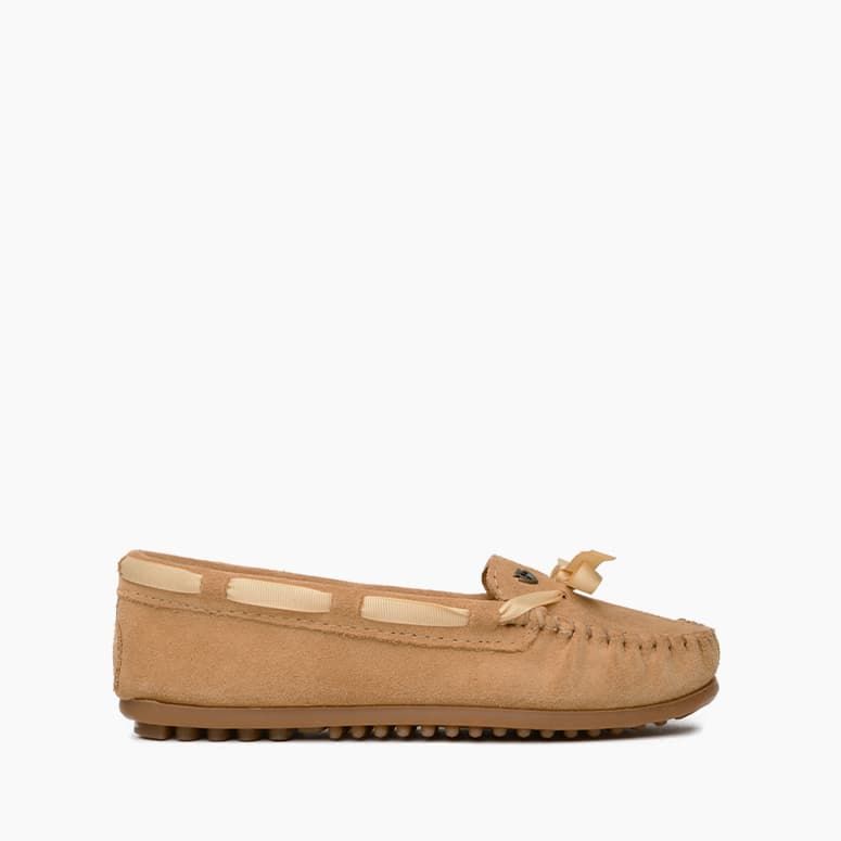 Mocs to keep you cozy year-round. Our signature suede moccasins get a cold-weather upgrade with a soft sheepskin insole to keep your toes warm and a cute ribbon lace to tie it all together. The lightweight rubber soles keep you steady as you float through the week in comfort and style.