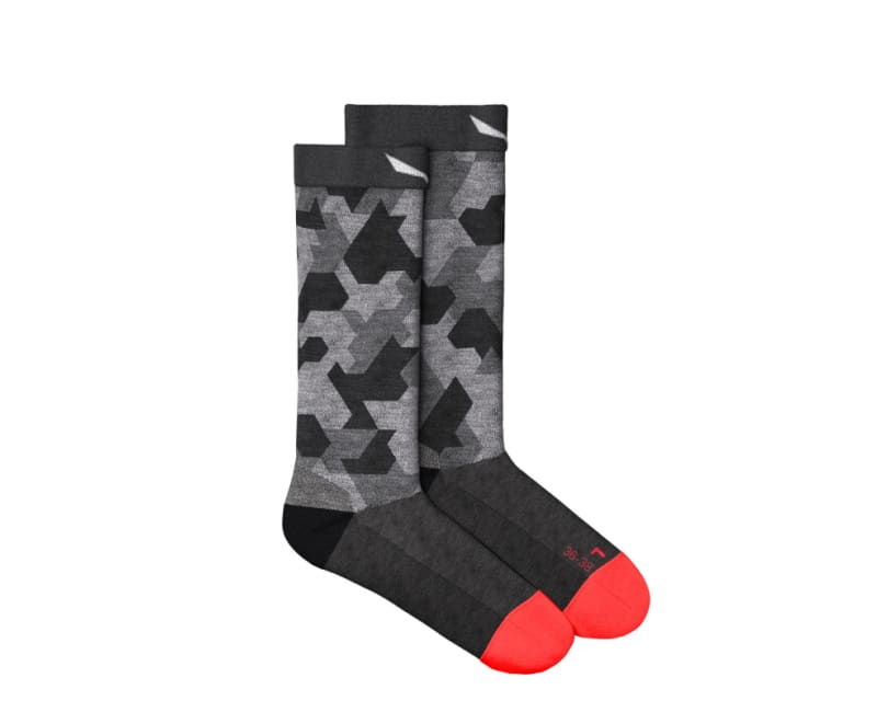 Our lightweight, soft and breathable polyamide, merino and TENCEL blend Pedroc Camo crew sock has a durable, stretch knit structure that is reinforced with a contrasting seamless toe cup and hardwearing heel. It fits comfortably at mid-calf height for extra protection in rocky or scrubby terrain.