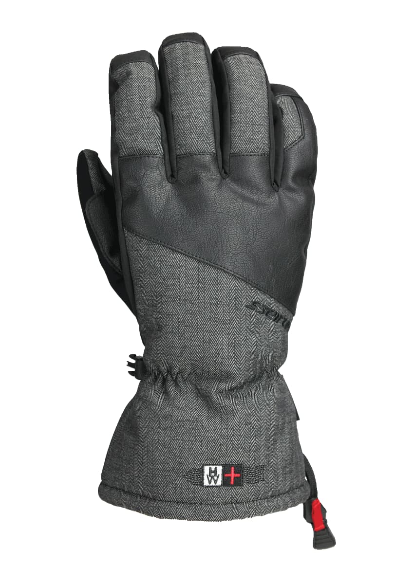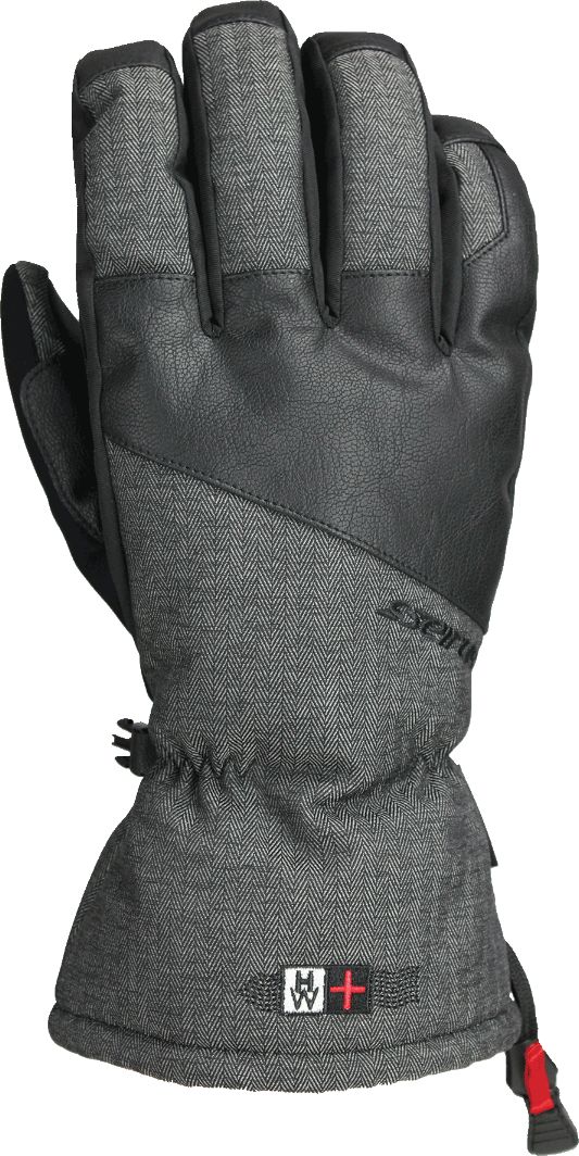 The sleek design of our original Dissolve glove bolstered by a gauntlet style cuff to keep out all the elements. With the Dissolve LX, the heathered Herringbone shell creates a rugged exterior, but the real star is the power of the HeatWave+ lining. The revolutionary dual heating system found in the Heatwave lining reflects and amplifies your bodys heat to produce that warm cozy feeling we all look for in a glove. Reflective Heat, Amplified. Thermal Reflective stage - up to 20% warmer. Kinetic stage - Amplifies Temperature 4-5. By both reflecting and amplifying heat emitted from your hand, you can stay warm without all the bulk. Recommended for: on-mountain use and extended periods in the cold