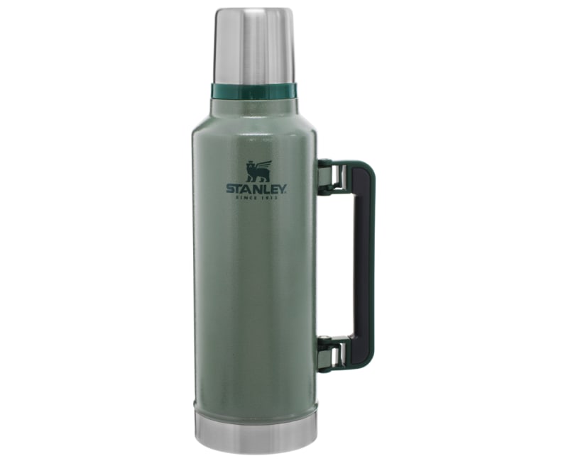 This bottle is built big for all your big adventures. Stanleys signature vacuum insulation will keep your coffee hot and your iced drinks cold for up to 2 days. The folding handle allows you to take it anywhere (and prevents it from rolling around in the back of your truck bed, boat or trailer). Its also leakproof, packable and easy-to-pour which makes it a welcome companion at any tailgate or camp out.