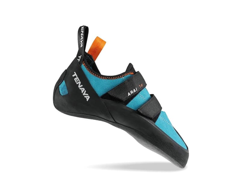The Arai is the bridge between a comfortable entry-level shoe and an aggressive performance shoe. It is the perfect all-day training shoe for new and experienced climbers alike. A slightly downturned toe offers performance, while a moderate heel cup offers a comfortable fit. Velcro straps make for quick transitions between climbs.