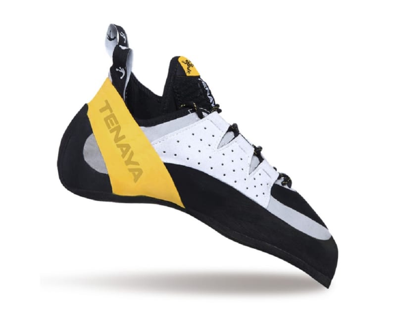 Developed in parallel with the Oasi, the Tarifa shares many of the technical advances applicable to that model. The major difference is that the Tarifa is slightly stiffer in the forefoot and heel, allowing greater force to be transmitted through the toes when using tiny edges, but still flexible enough in the midsole for marginal smears. Climbing shoes perfect for vertical walls and for routes requiring demanding foot placements. Like all Tenaya's models in the Aerial Plus range though, the Tarifa's curved shape and advanced toe-box means it is also a star performer on overhang walls.