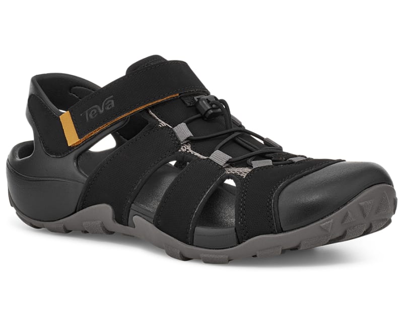 The sandal equivalent of an amphibian, the water-loving Flintwood is ready for both wet and dry adventures, engineered with injection molded EVA for comfort and lightweight construction, water-repellant materials, a quick-drying synthetic upper, and breathable mesh lining. Outfitted with multiple points of adjustability to dial in the perfect fit, this mens sport sandal features a bungee cord lace to secure the foot in place.