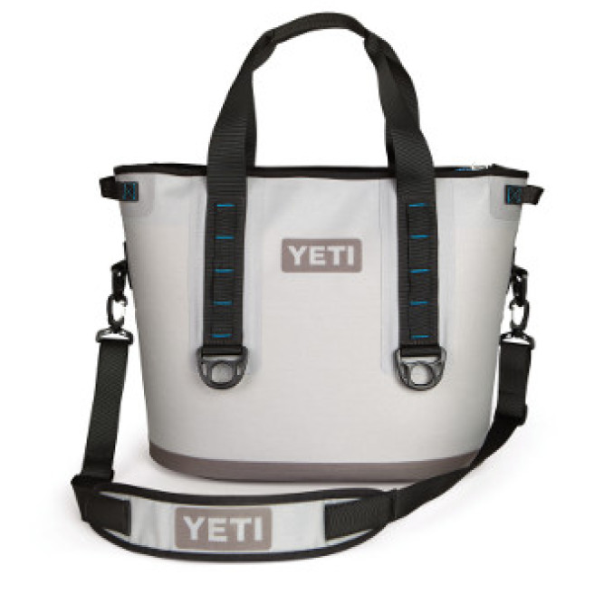 The YETI soft cooler, the Hopper, is 100% leak proof and easily transportable. They are a bit smaller than their hard coolers and designed to fit any size adventure. They are made with a high-density fabric that is waterproof and puncture proof. Their Cold Cell insulation offers superior temperature holding and makes the coolers buoyant. The impressive Hydrolok zipper was inspired by cold-water survival suits and make the cooler completely watertight.