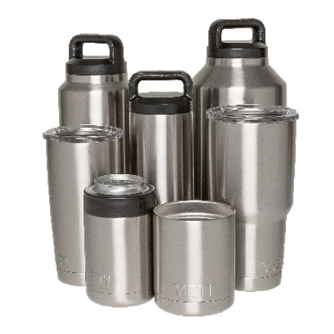 All YETI Rambler Drinkware are all made of 18/8 stainless steel and has vacuum-insulated walls that maintain temperature without transferring them to the outside, eliminating condensation and keeping your hands dry. Unlike cheaper alternates, they leave no lingering metallic taste and can withstand outside temperatures higher than others (over 160F and still keeps your drink cold). The lids are made from BPA free plastic and every part is dishwasher safe.