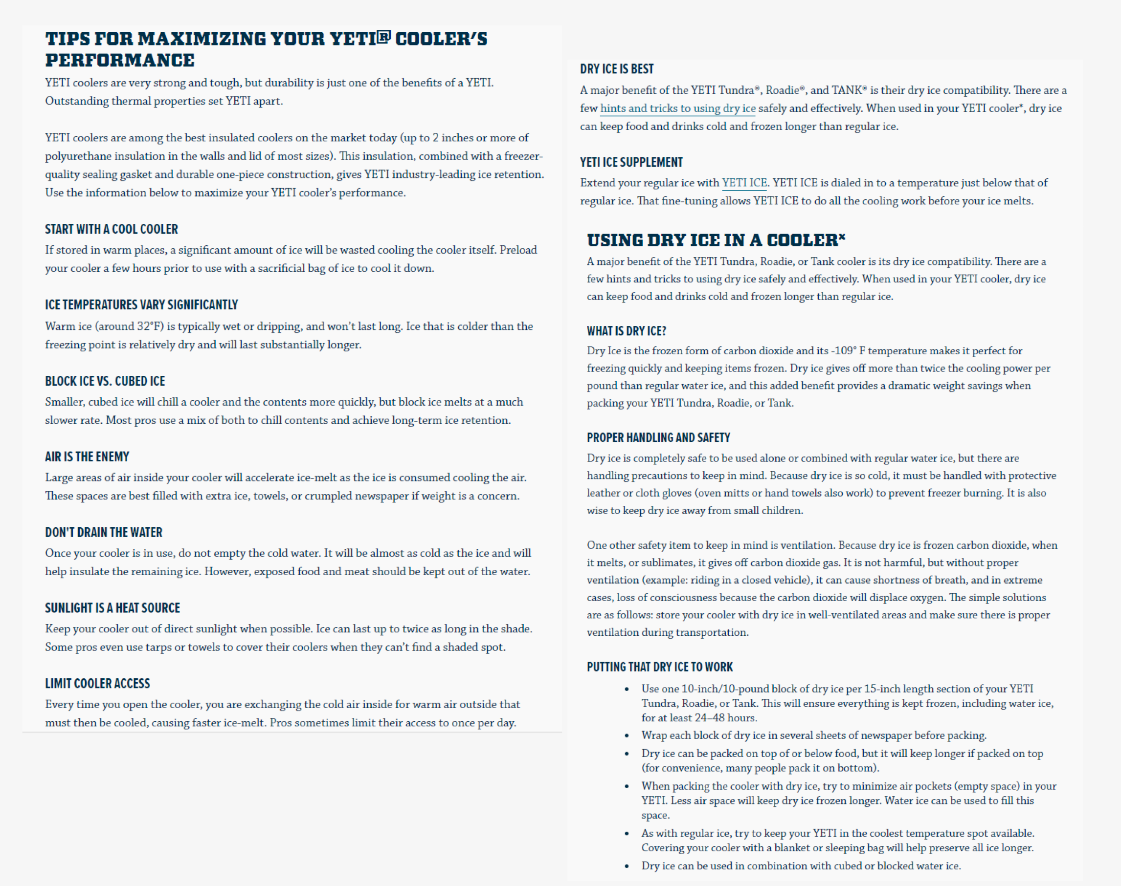 YETI hard coolers, the Roadie and Tundra, are made through a process called biaxial roto molding. This processes involves layering polyethylene plastic resin, heating, and spinning it to get a seamless and nearly indestructible product designed to take years of (ab)use! To test this, a YETI Cooler was filled with food and submitted to the IGBC Grizzly test. 1,500 lbs of Grizzly Bear claws and jaws were unable to break into the YETI and the bear left hungry! Every YETI hard cooler features deep-freeze sealing gaskets, 2" to 2.5" of the highest quality insulation (other coolers come with 1" to 1.5"), and the YETI Guarantee that it will last many, many years.